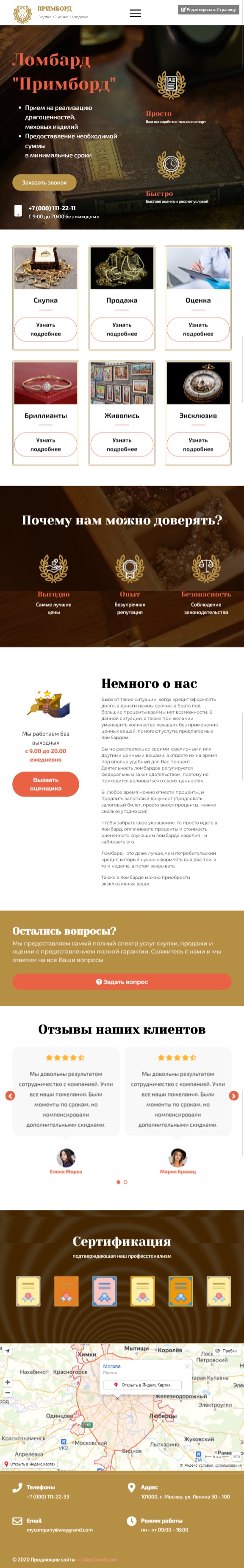 Закажите готовый продающий сайт лендинг #2408201 в Первоуральске за 1-3 дня «под ключ»: свёрстан, отрисован и готов к рекламе. Тематика шаблона «Ломбард».