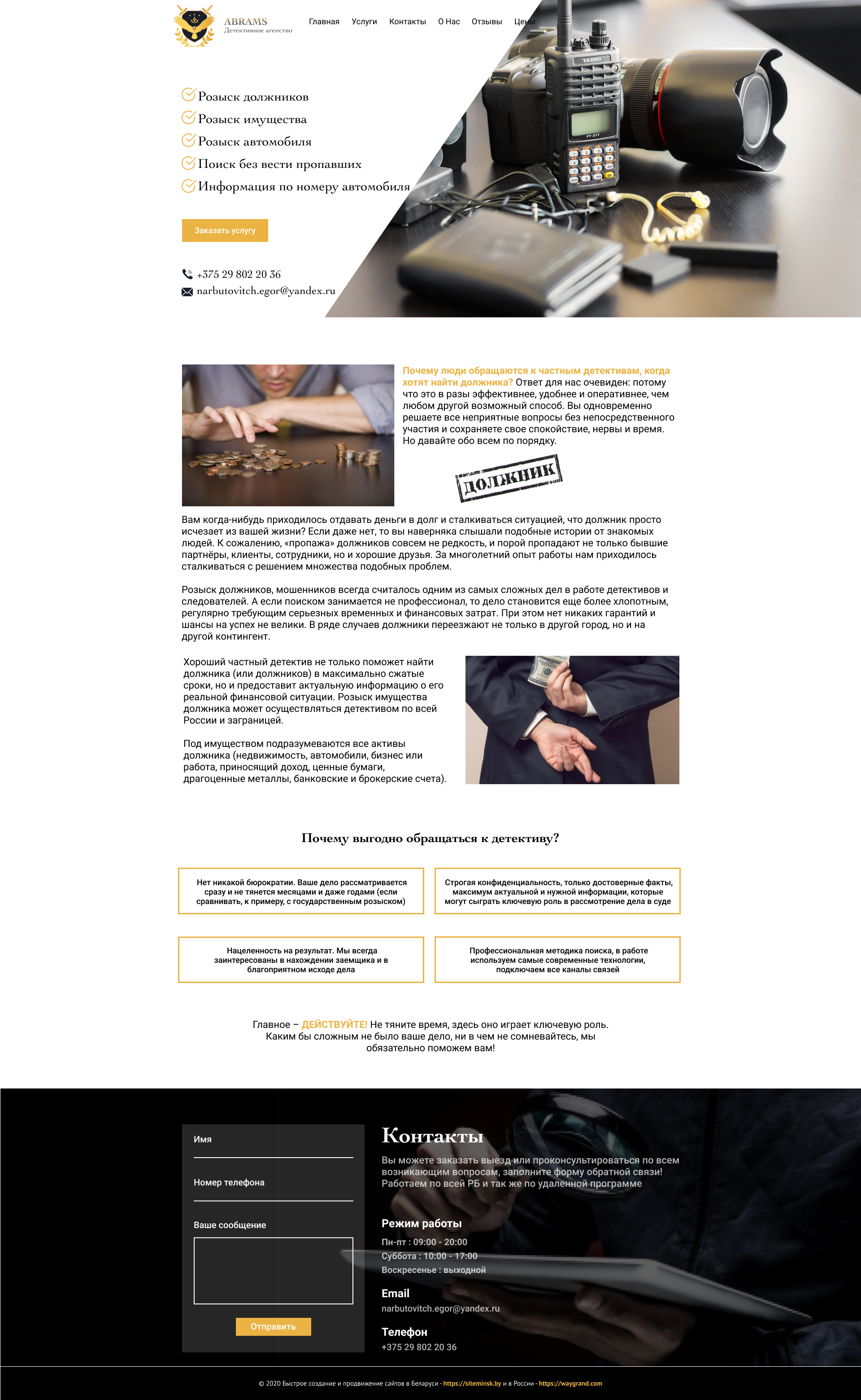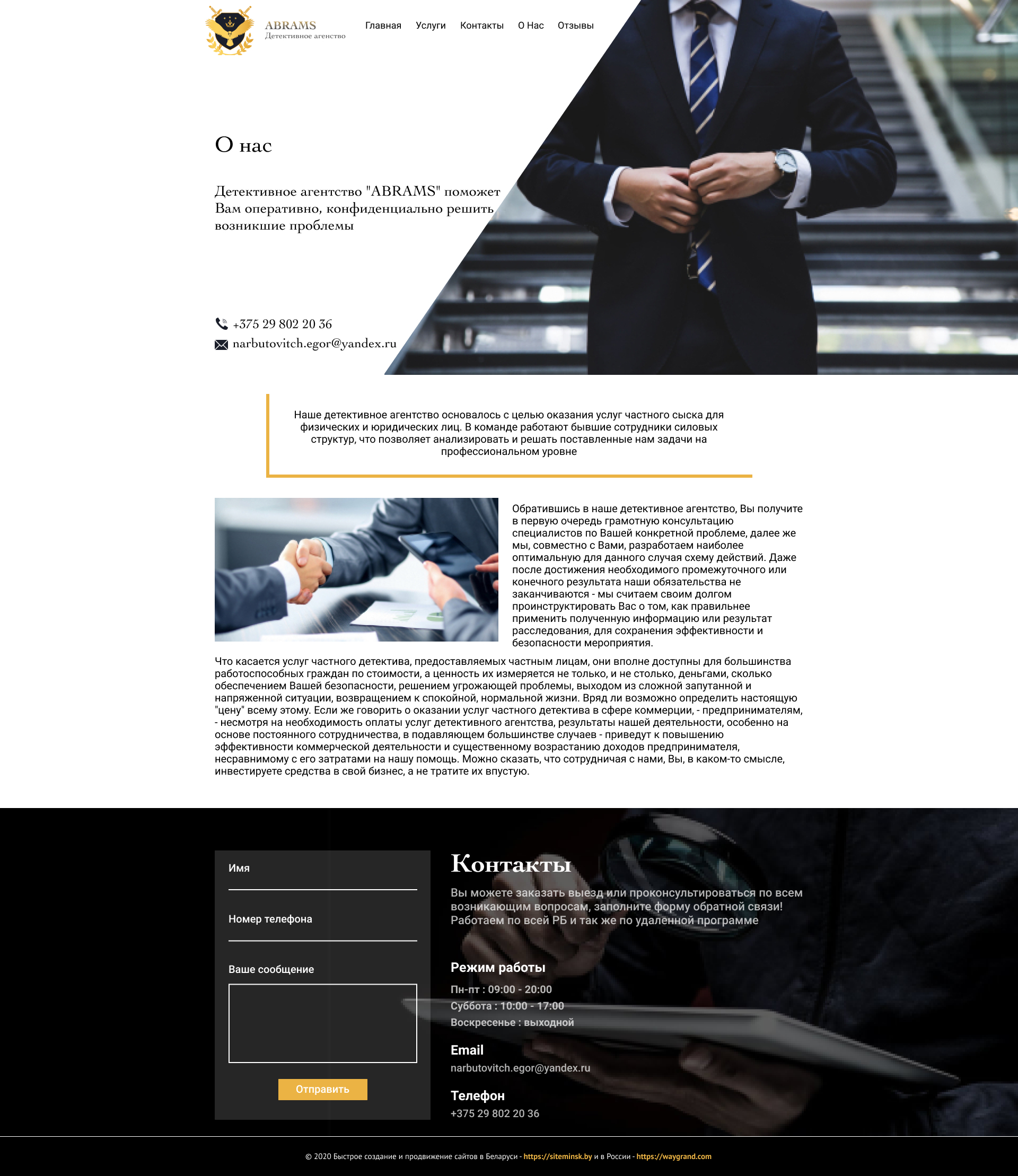 Закажите готовый продающий сайт визитка #239 в Первоуральске за 5-7 дня «под ключ»: свёрстан, отрисован и готов к рекламе. Тематика шаблона «Частное детективное агентство».