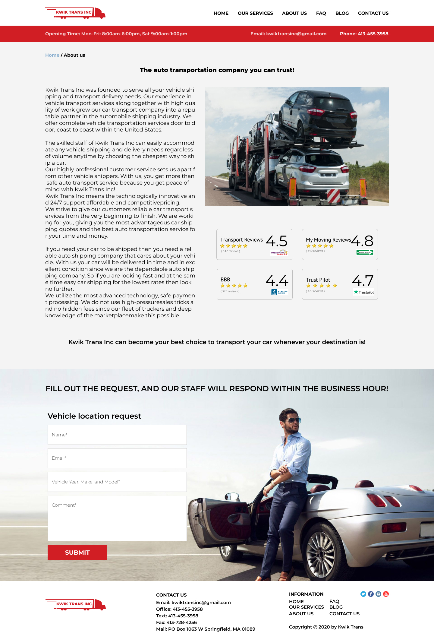 Закажите готовый продающий сайт визитка #223 в Первоуральске за 5-7 дня «под ключ»: свёрстан, отрисован и готов к рекламе. Тематика шаблона «Safe & Reliable National Auto Transport».